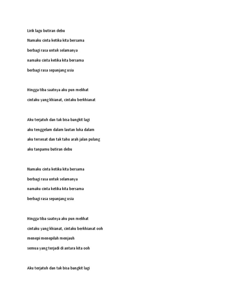 Berikut cuplikan syair nyanyian / teks dari lagunya: