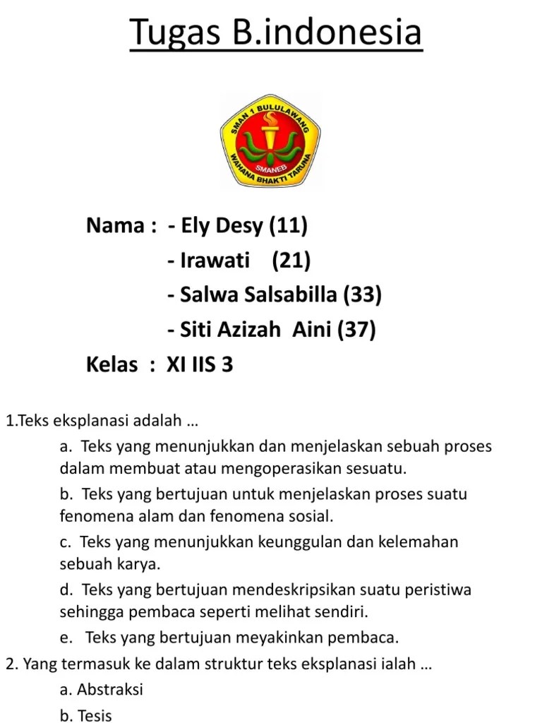 Kunci jawaban bahasa indonesia kelas 11 tugas halaman 63 64tugas bab 2 mempelajari teks eksplanasi kelas 2 sma ma mak smk kurikulum 2013 . Contoh teks eksplanasi, bisa untuk bahan tugas bahasa indonesia. Terhadap menulis teks eksplanasi siswa . Tugas teks eksplanasi bahasa indonesia disusun oleh : Buku siswa bahasa indonesia smp/mts kelas vii, jakarta :.